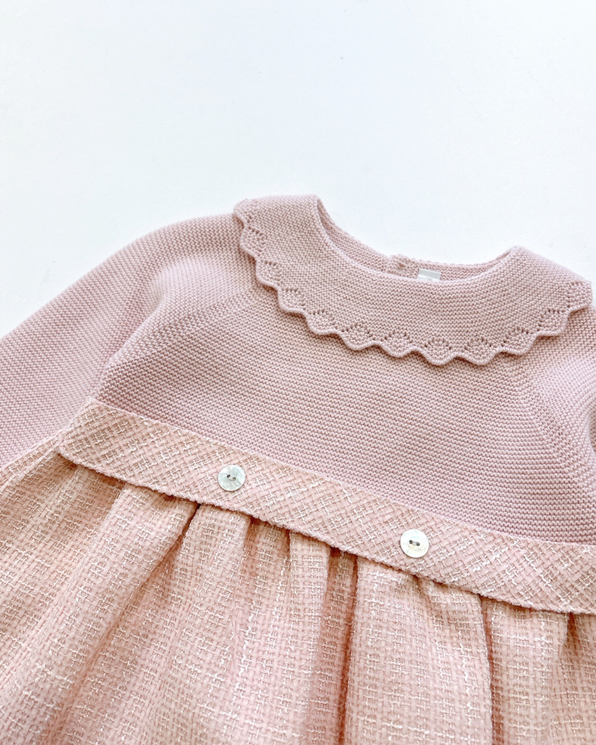 首元と袖口には繊細なスカラップ編みをあしらうことで、