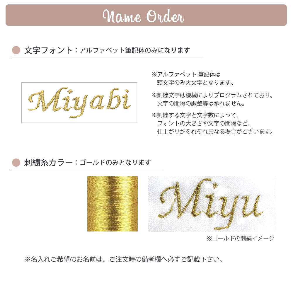 名入れ刺繍についてのご注意をよくご確認の上、