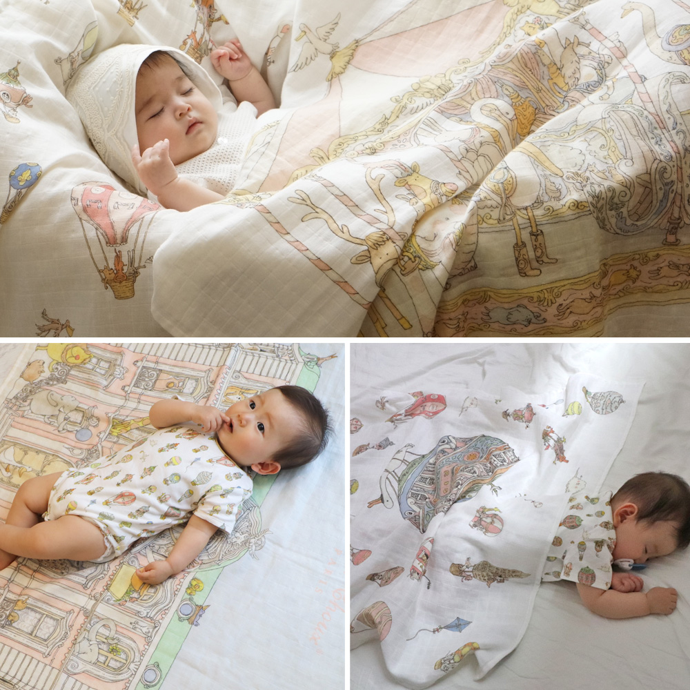 定番の薄手ブランケット(おくるみ)を始め、 様々なベビーアイテムを販売しています。