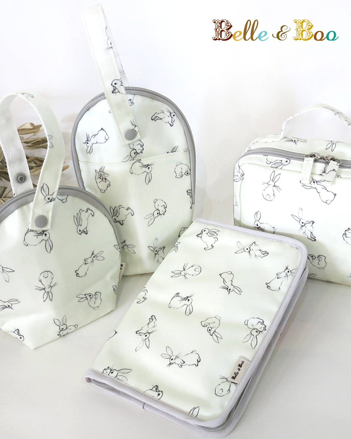 うさぎのブゥ柄 ラミネートシリーズ(おむつポーチ/母子手帳ケース/ボトルケース/マグポーチ)ブーケラッピング BelleBoo ベルアンドブー