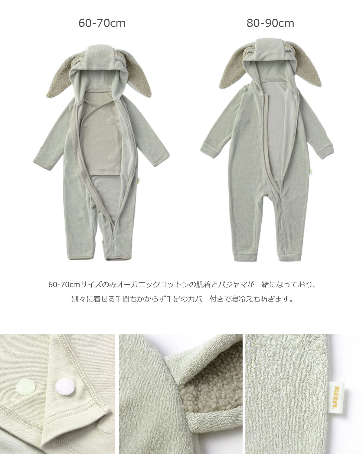 別布部分:ポリエステル100%(サイズ60-70cmのみ)